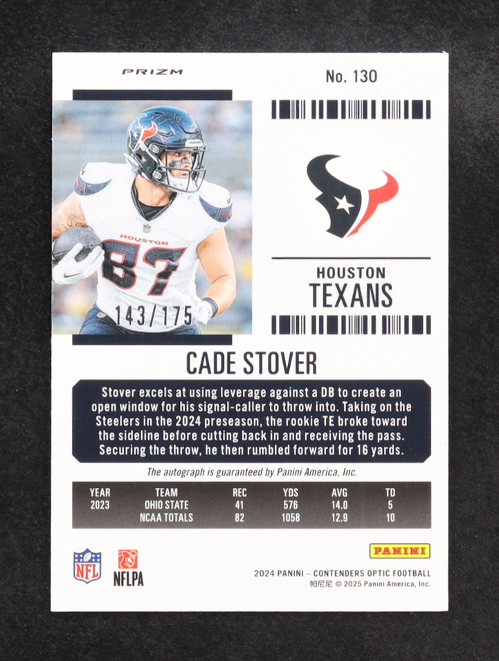 Cade Stover 2024 Panini Contenders Optic Red #130 Autograph RC #143/175
