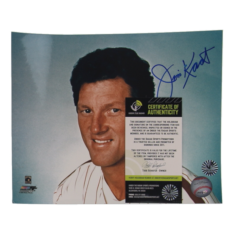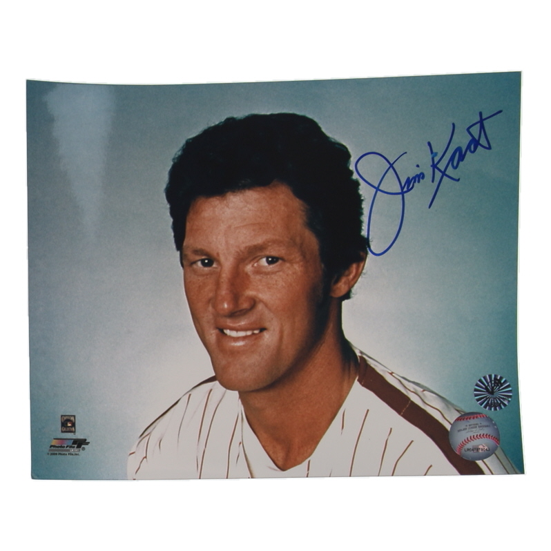 Photo measures 8" x 10" in size. Hand-signed by Jim Kaat (Philadelphia Phillies). Please note, the signature is smudged.