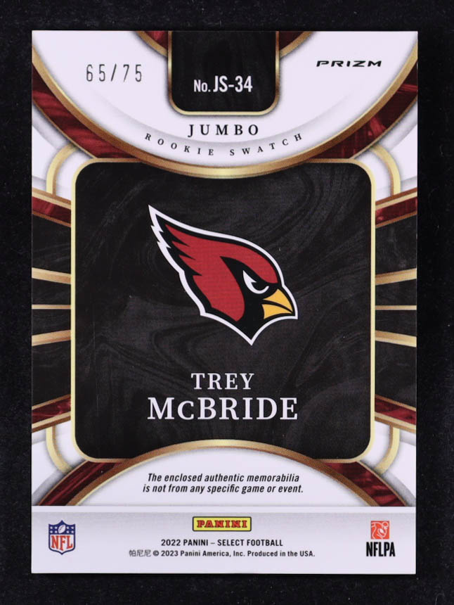 Trey McBride 2022 Select Jumbo Rookie Swatch Prizm White #34 RC #65/75