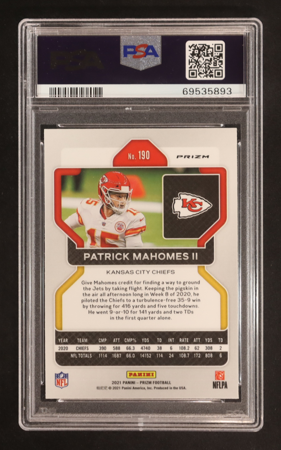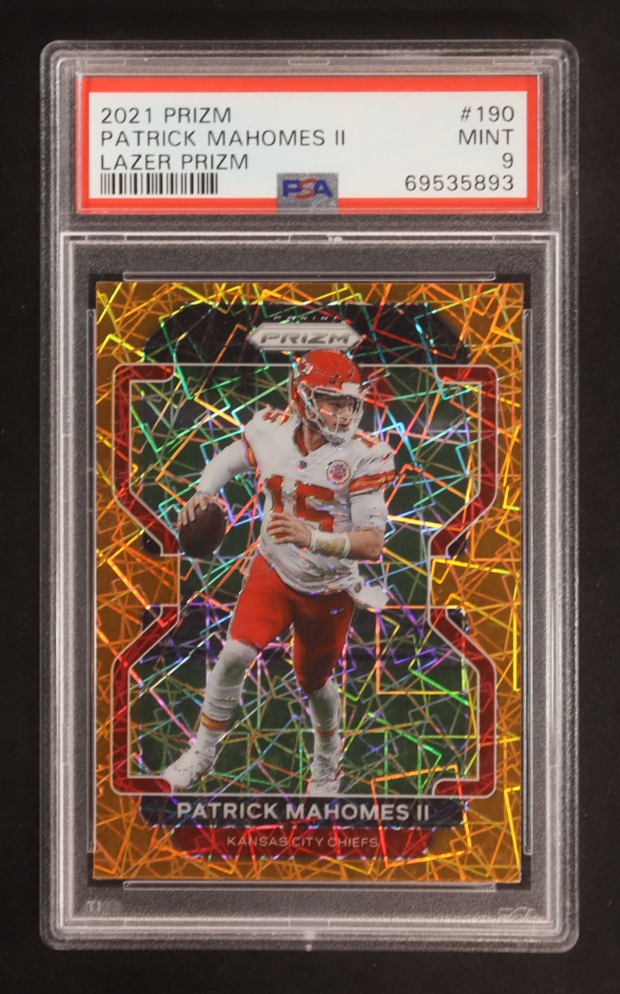 Patrick Mahomes II 2021 Panini Prizm Prizms Orange Lazer #190 (PSA 9)