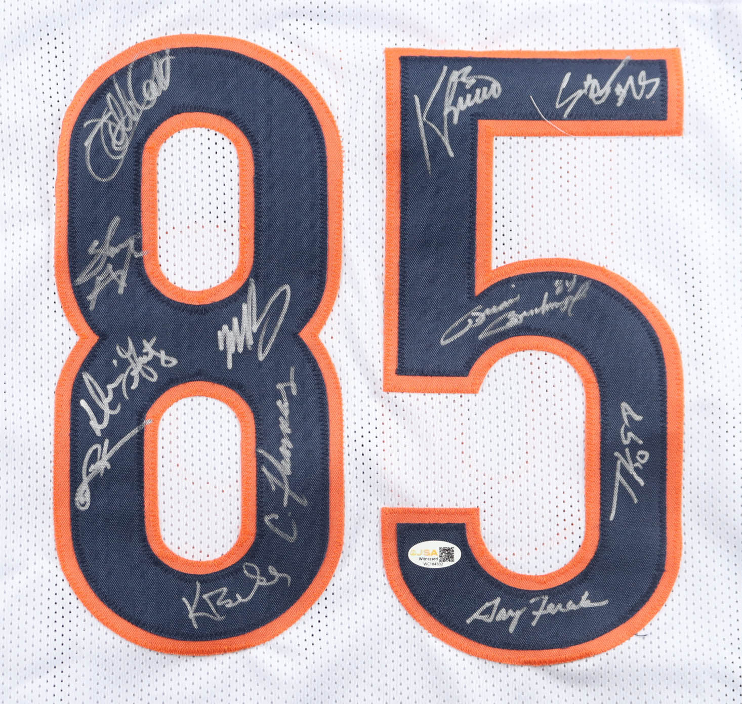 1985 Bears World Champions Jersey Team-Signed by (12) with Mike Singletary, Willlie Gault, Shaun Gayle, Stefan Humphries (JSA)