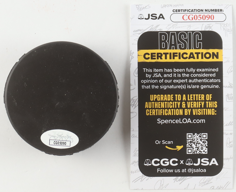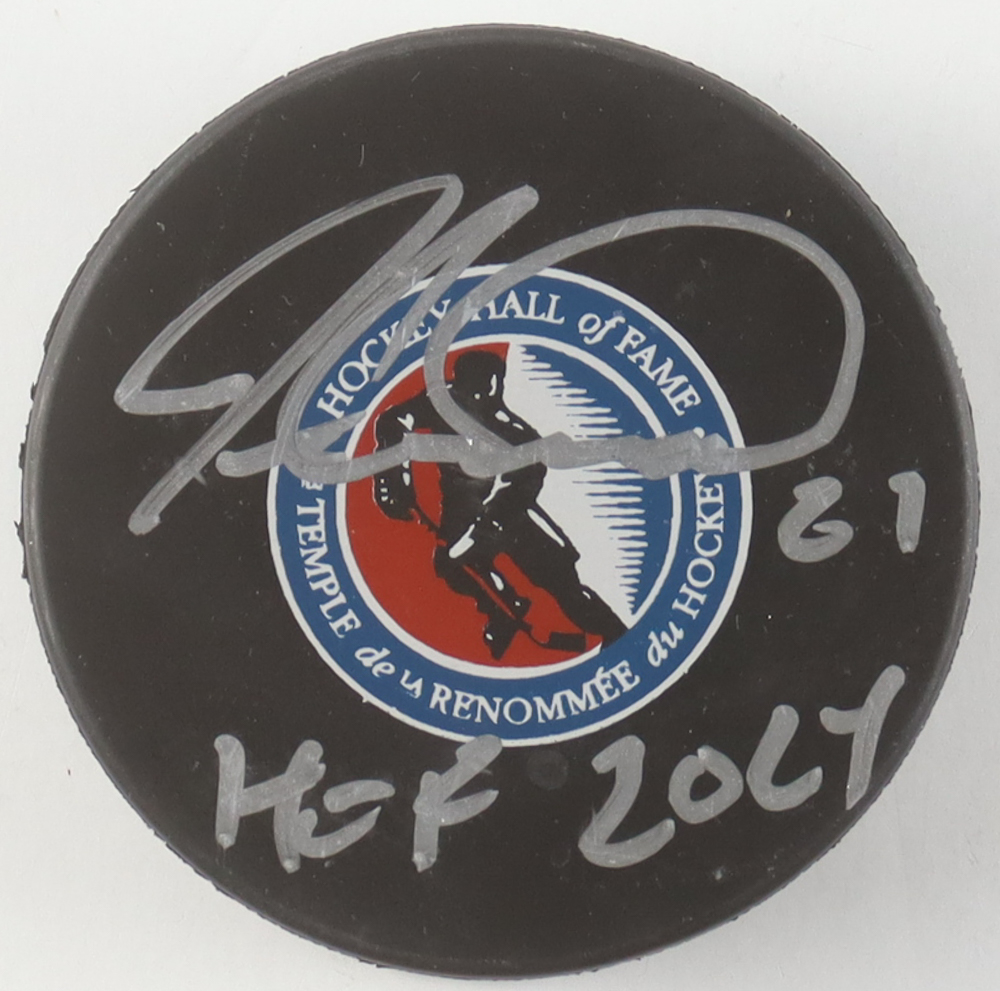Hockey Hall of Fame Logo Hockey Puck. Hand-signed and inscribed by Jeremy Roenick (HOF).