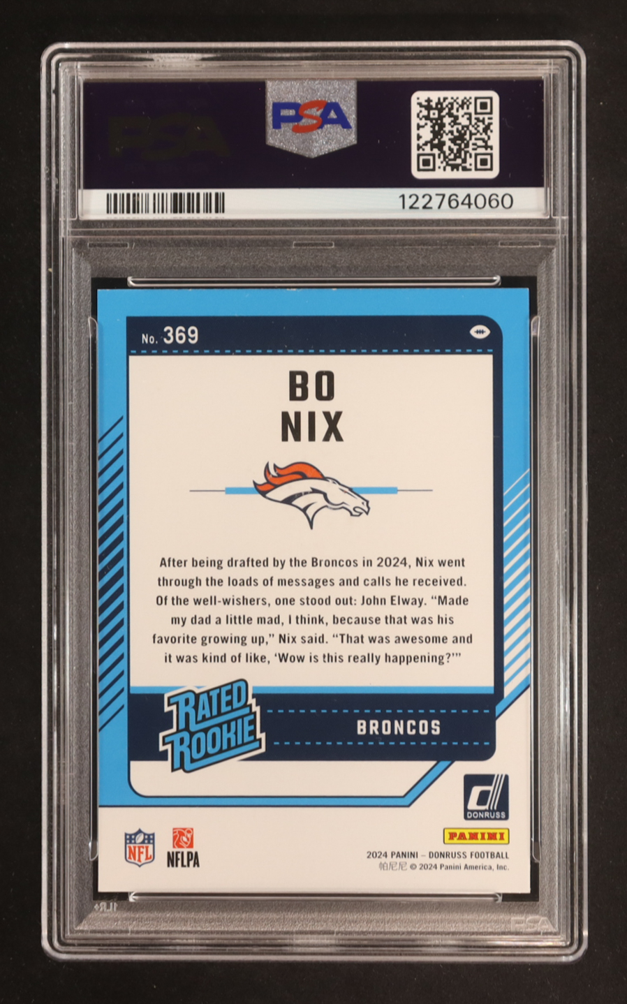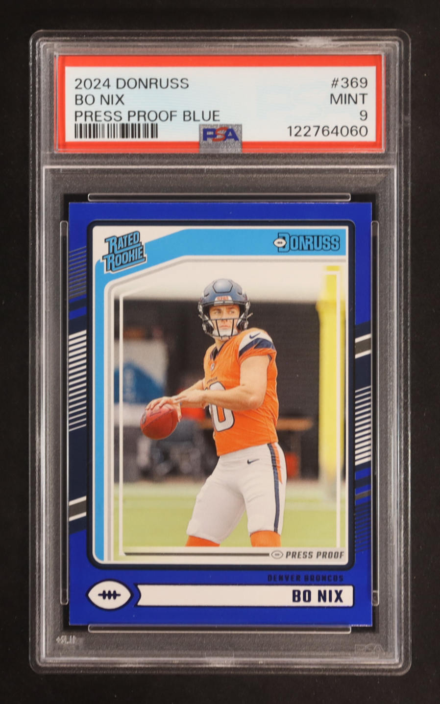 Bo Nix 2024 Donruss Press Proof Blue #369 RR RC (PSA 9)