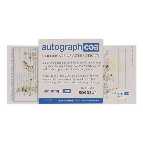 The lot / autograph(s) includes an official AutographCOA (ACOA) Authentication hologram and matching COA for authenticity purposes.