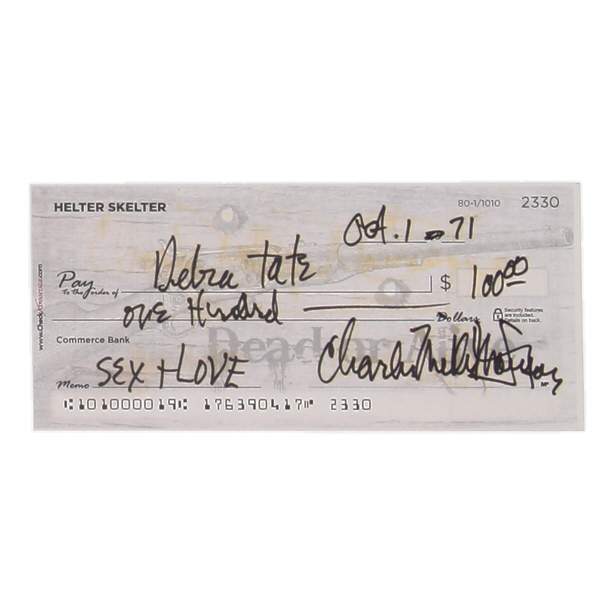 Check dated October 1971 measures approximately 3" x 6" in size and has been hand-signed by Charles Manson (D. 2017).