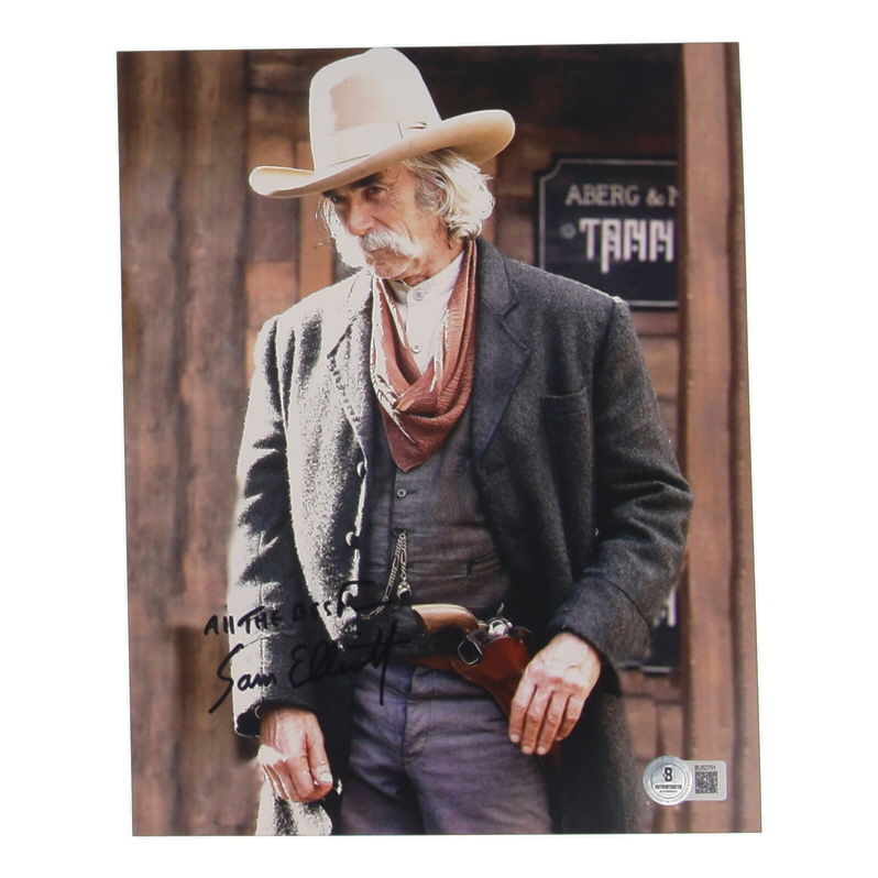 Photo measures approximately 8" x 10" in size and has been hand-signed and inscribed by Sam Elliott.