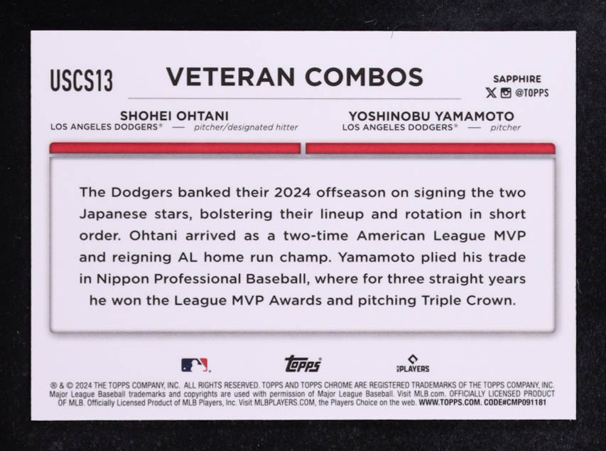 Shohei Ohtani / Yoshinobu Yamamoto RC 2024 Topps Chrome Update Sapphire #USCS13