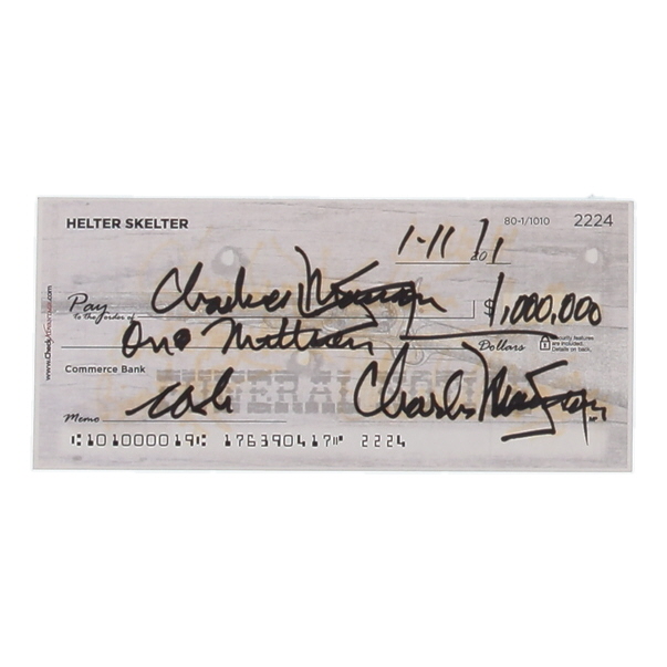 Check dated January 2011 measures approximately 3" x 6" in size and has been hand-signed by Charles Manson (D. 2017).