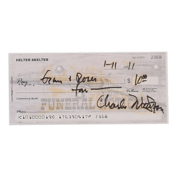 Check dated January 2011 measures approximately 3" x 6" in size and has been hand-signed by Charles Manson (D. 2017).