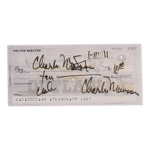 Check dated January 2011 measures approximately 3" x 6" in size and has been hand-signed by Charles Manson (D. 2017).