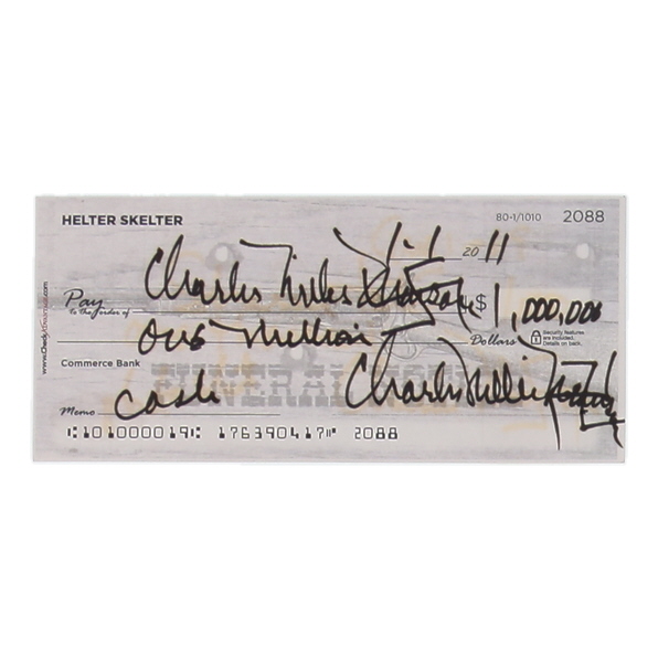 Check dated January 2011 measures approximately 3" x 6" in size and has been hand-signed by Charles Manson (D. 2017).