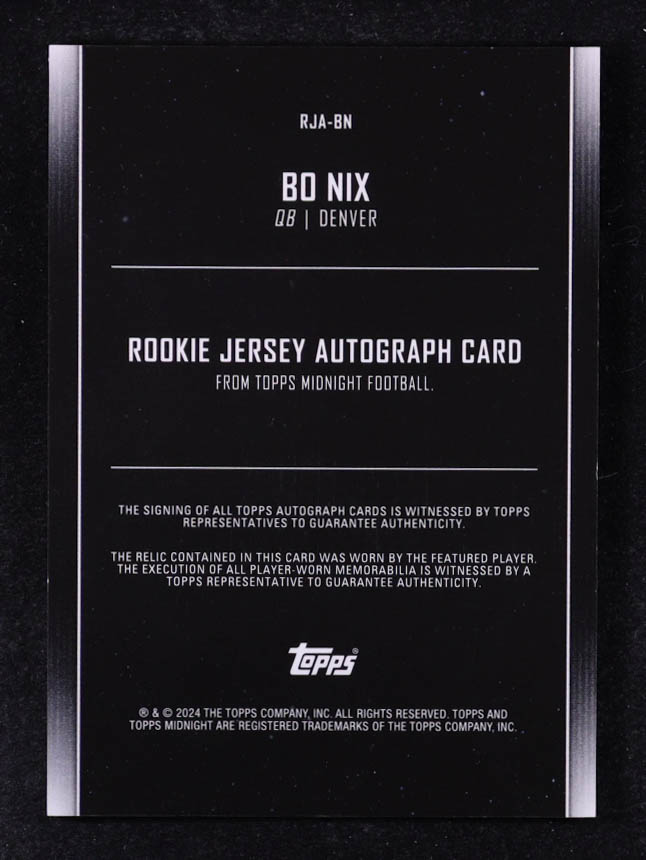 Bo Nix 2024 Topps Midnight Rookie Jersey Autographs Twilight #RJABN RC #12/99