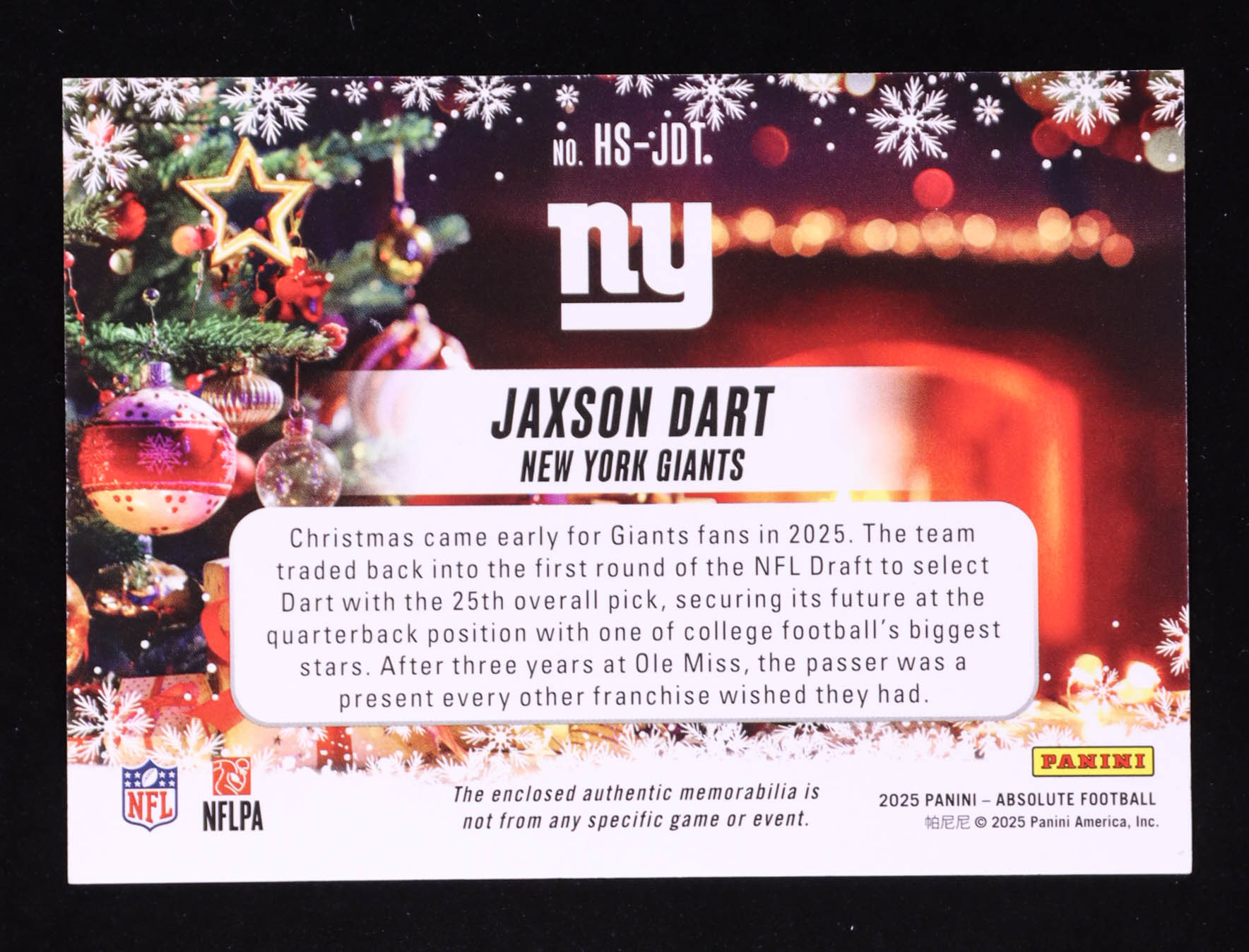 Jaxson Dart 2025 Absolute Holiday Suit #16 RC