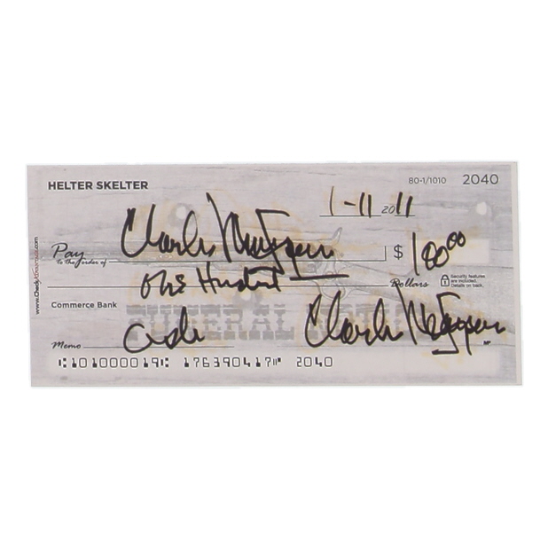 Check dated January 2011 measures approximately 3" x 6" in size and has been hand-signed by Charles Manson (D. 2017).