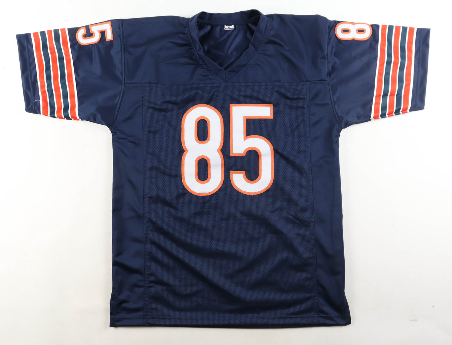 Custom jersey with everything sewn on, size XL. Hand-signed by (12) with Mike Singletary (HOF), Willie Gault, Shaun Gayle, Stefan Humphries, Kevin Butler, Dennis Gentry, Calvin Thomas, Dennis McKinnon, Kurt Becker, Tyrone Keys, Brian Baschnagel, and Gary Fencik. Please note, some signatures have bled.