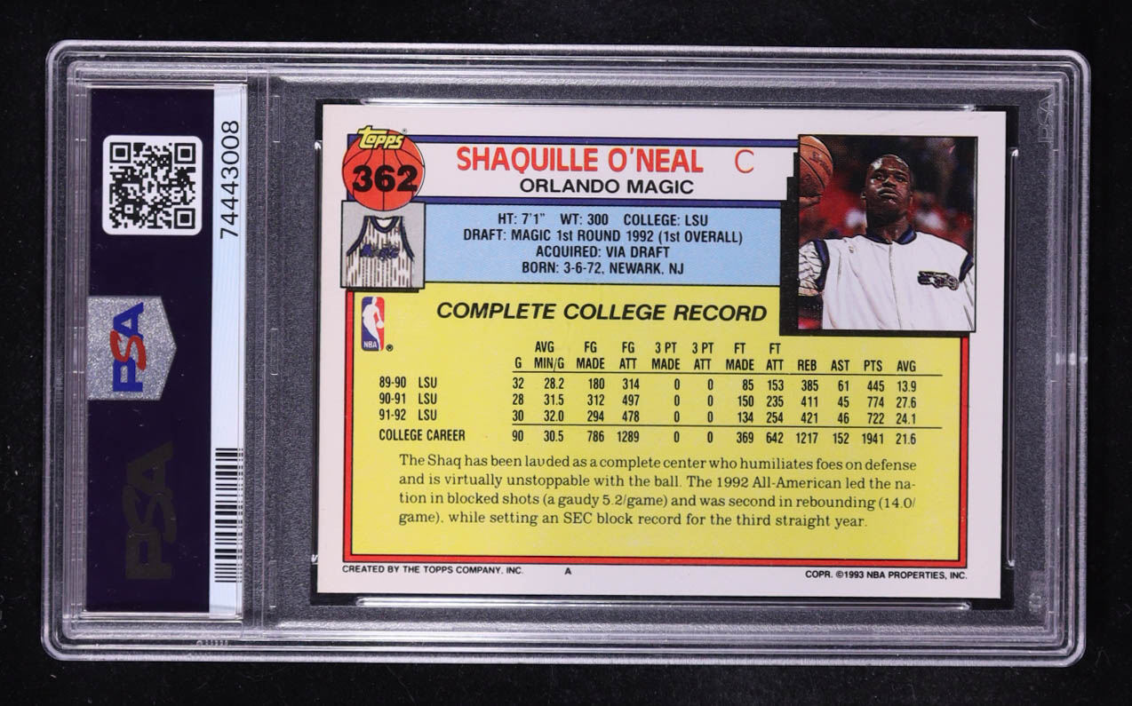 Shaquille O'Neal 1992-93 Topps #362 RC (PSA 9)