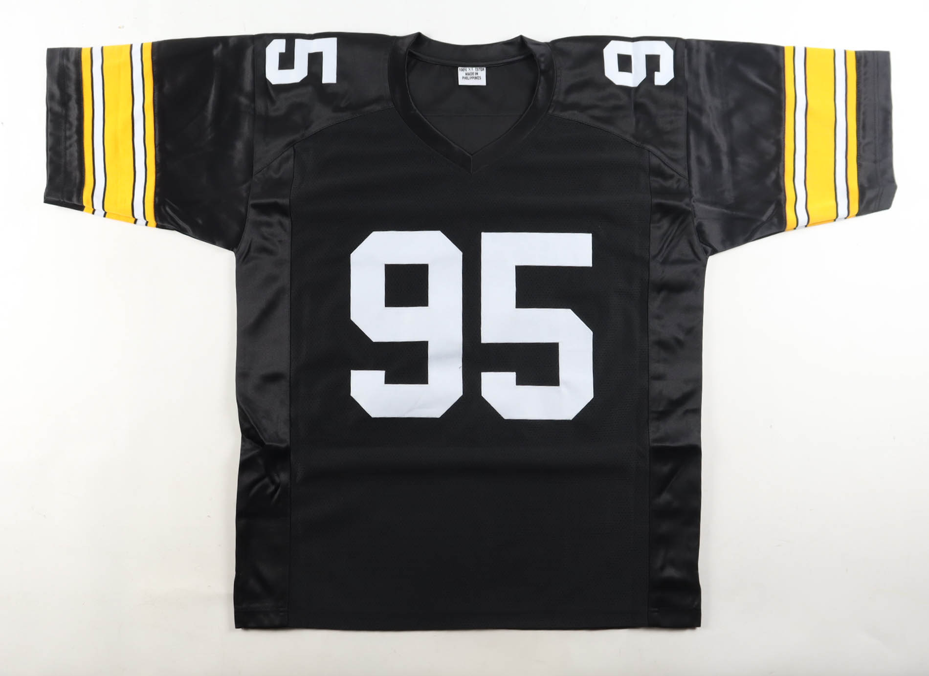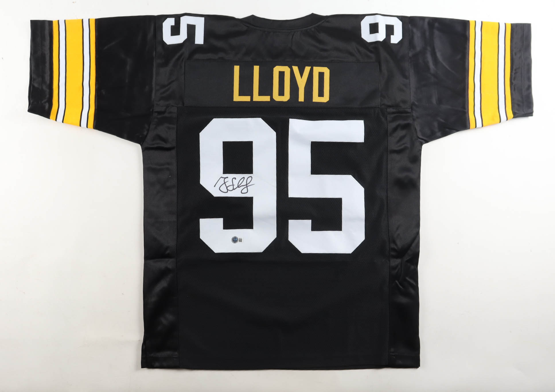 Custom jersey with everything sewn on, size XL. Hand-signed by Greg Lloyd. Please note, glue is visible through the jersey numbers.