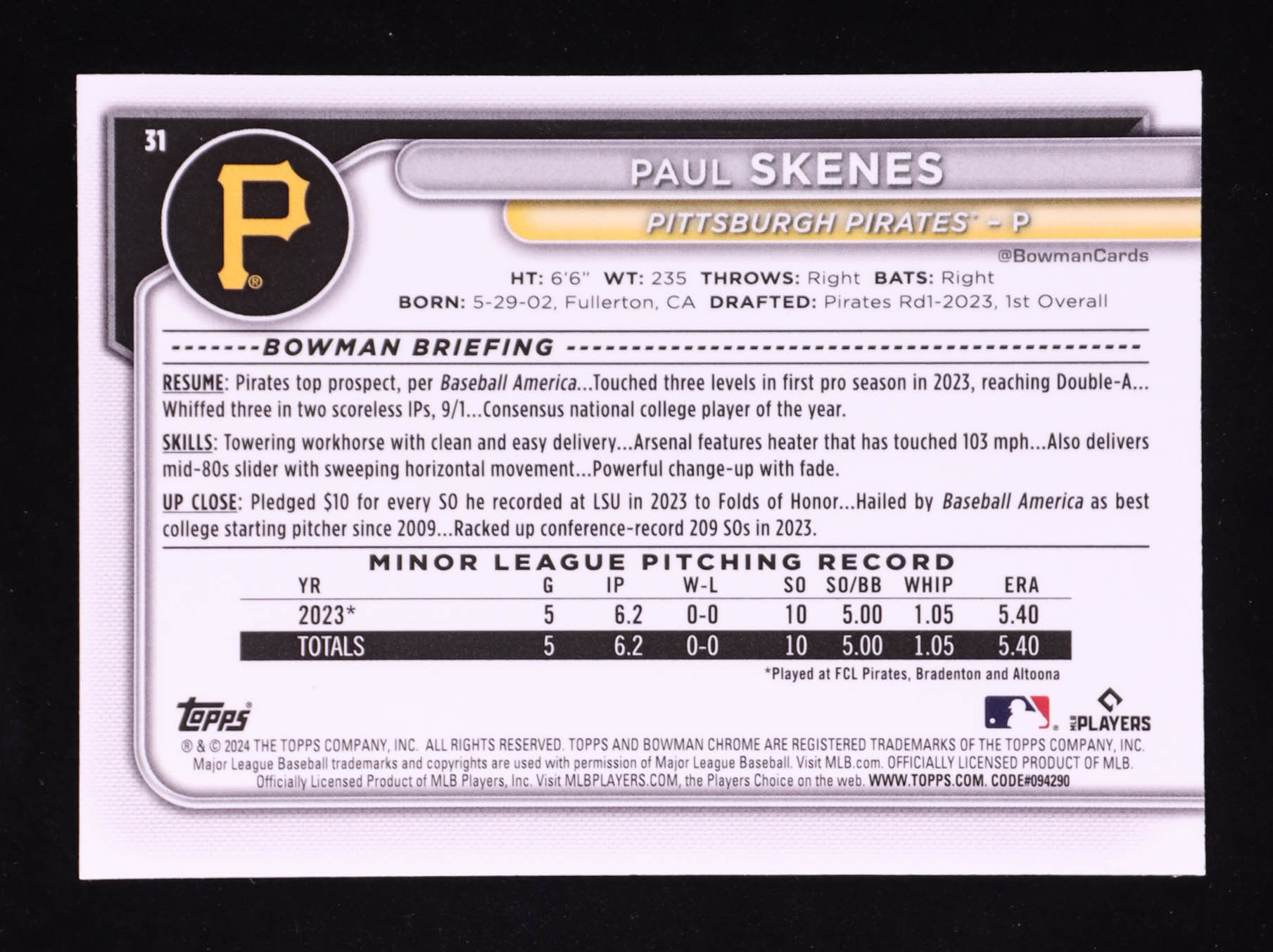 Paul Skenes 2024 Bowman Chrome Mega Box #31 RC