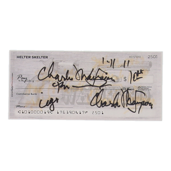 Check dated January 2011 measures approximately 3" x 6" in size and has been hand-signed by Charles Manson (D. 2017).