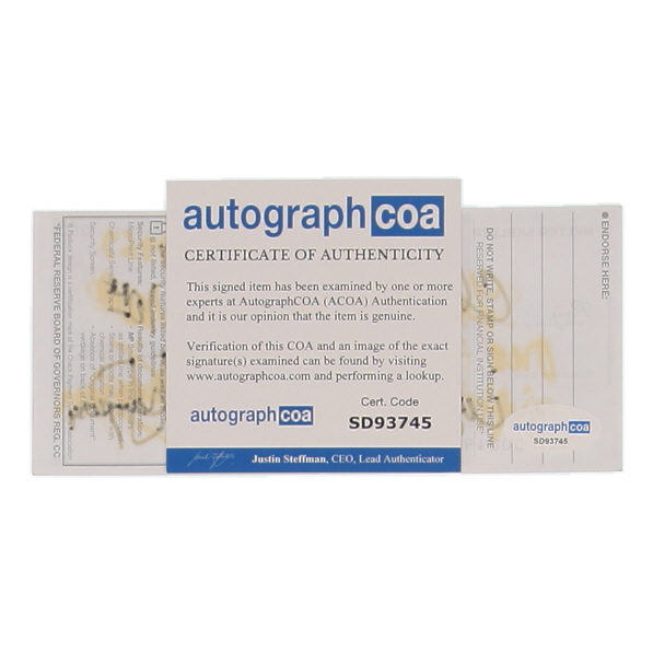 The lot / autograph(s) includes an official AutographCOA (ACOA) Authentication hologram and matching COA for authenticity purposes.