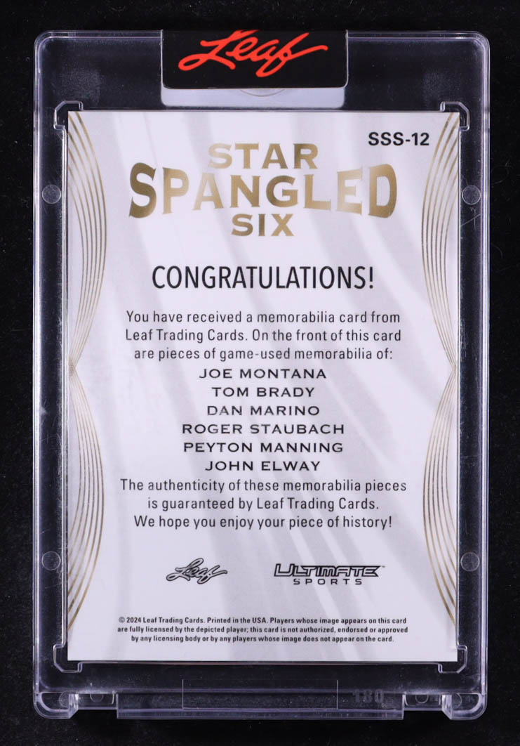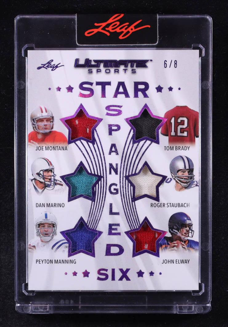 Joe Montana / Tom Brady / Dan Marino / Roger Staubach / Peyton Manning / John Elway 2024 Leaf Ultimate Sports Star Spangled Six Purple #SSS12 #6/8