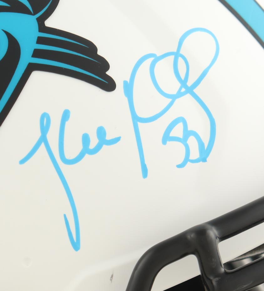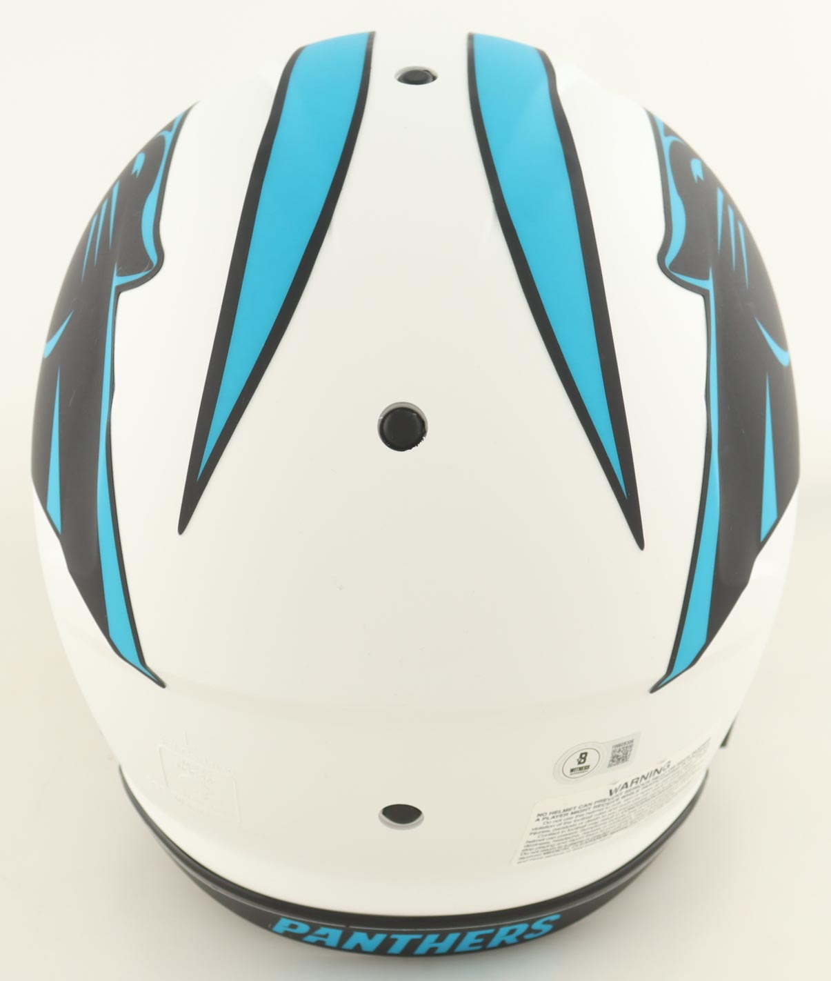 Riddell Carolina Panthers Full-Size replica Lunar Eclipse Alternate Speed helmet. Hand-signed and inscribed by Luke Kuechly.