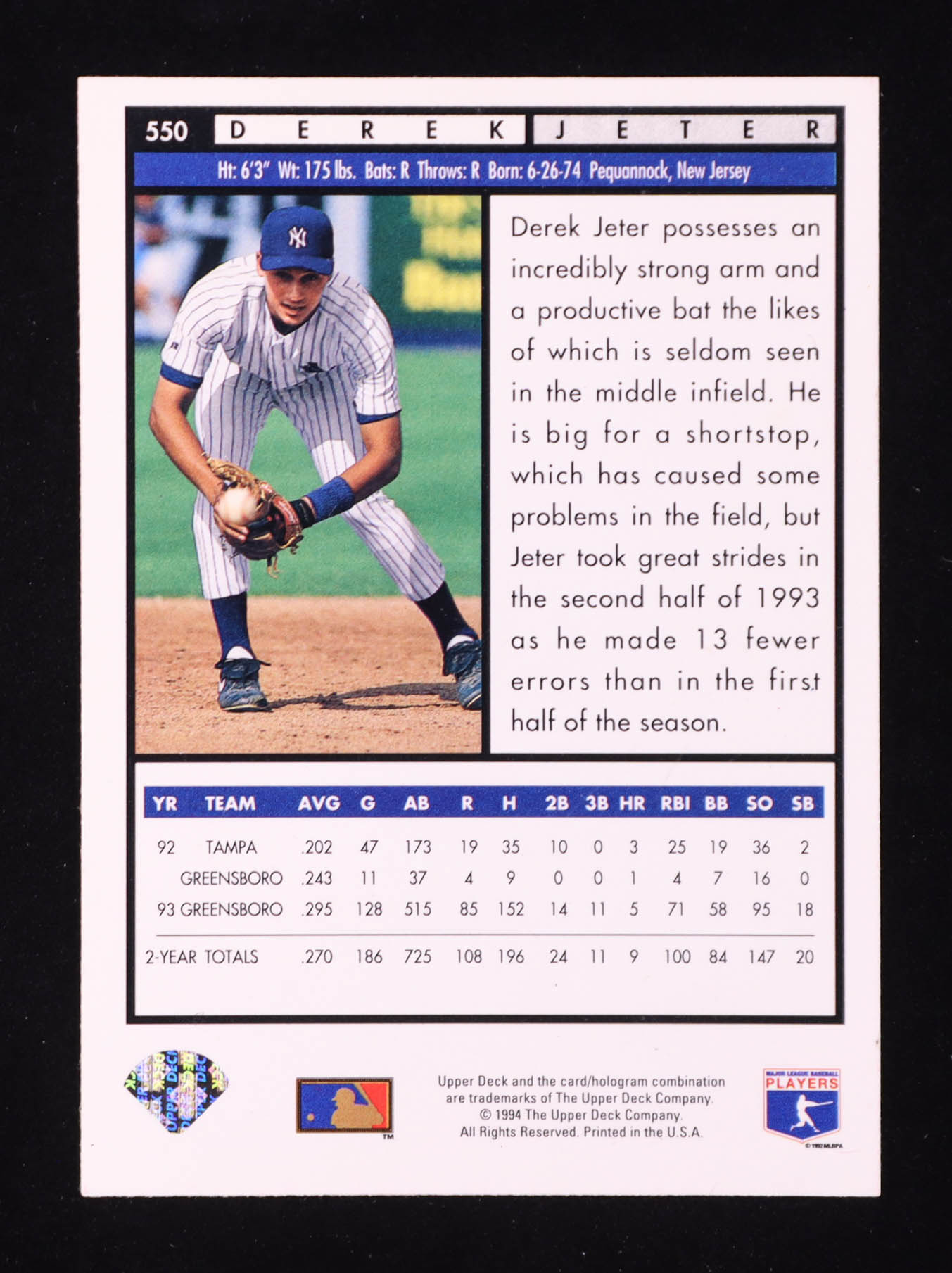 Derek Jeter 1994 Upper Deck RC #550