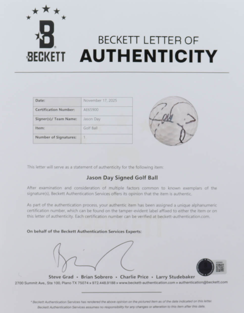 Jason Day Signed Masters Logo Golf Ball (Beckett)