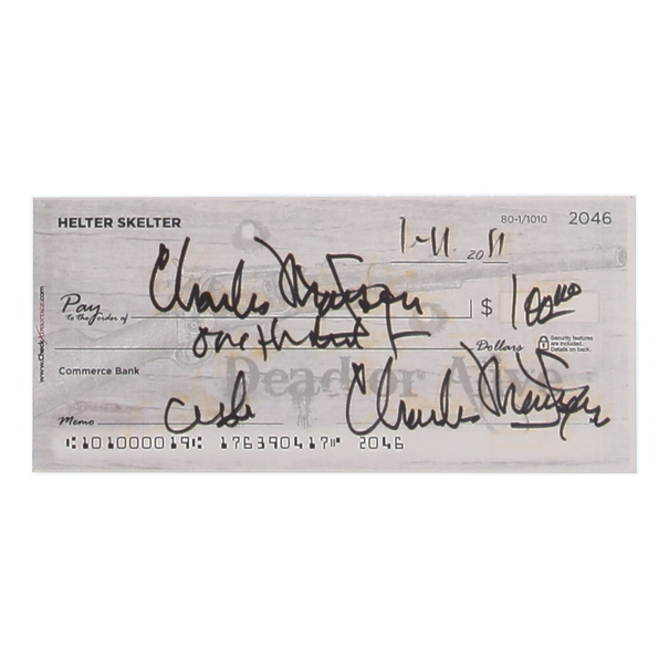 Check dated January 2011 measures approximately 3" x 6" in size and has been hand-signed by Charles Manson (D. 2017).