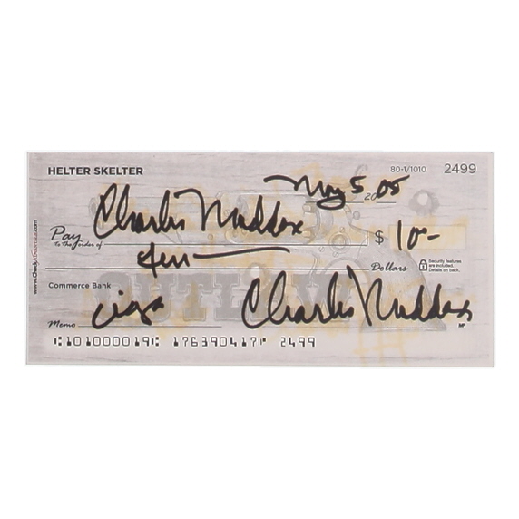 Check dated May 2005 measures approximately 3" x 6" in size and has been hand-signed by Charles Manson (D. 2017).