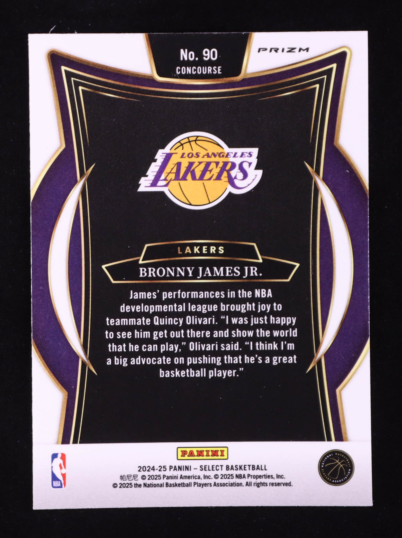 Bronny James Jr. 2024-25 Select Silver Prizms #90 RC