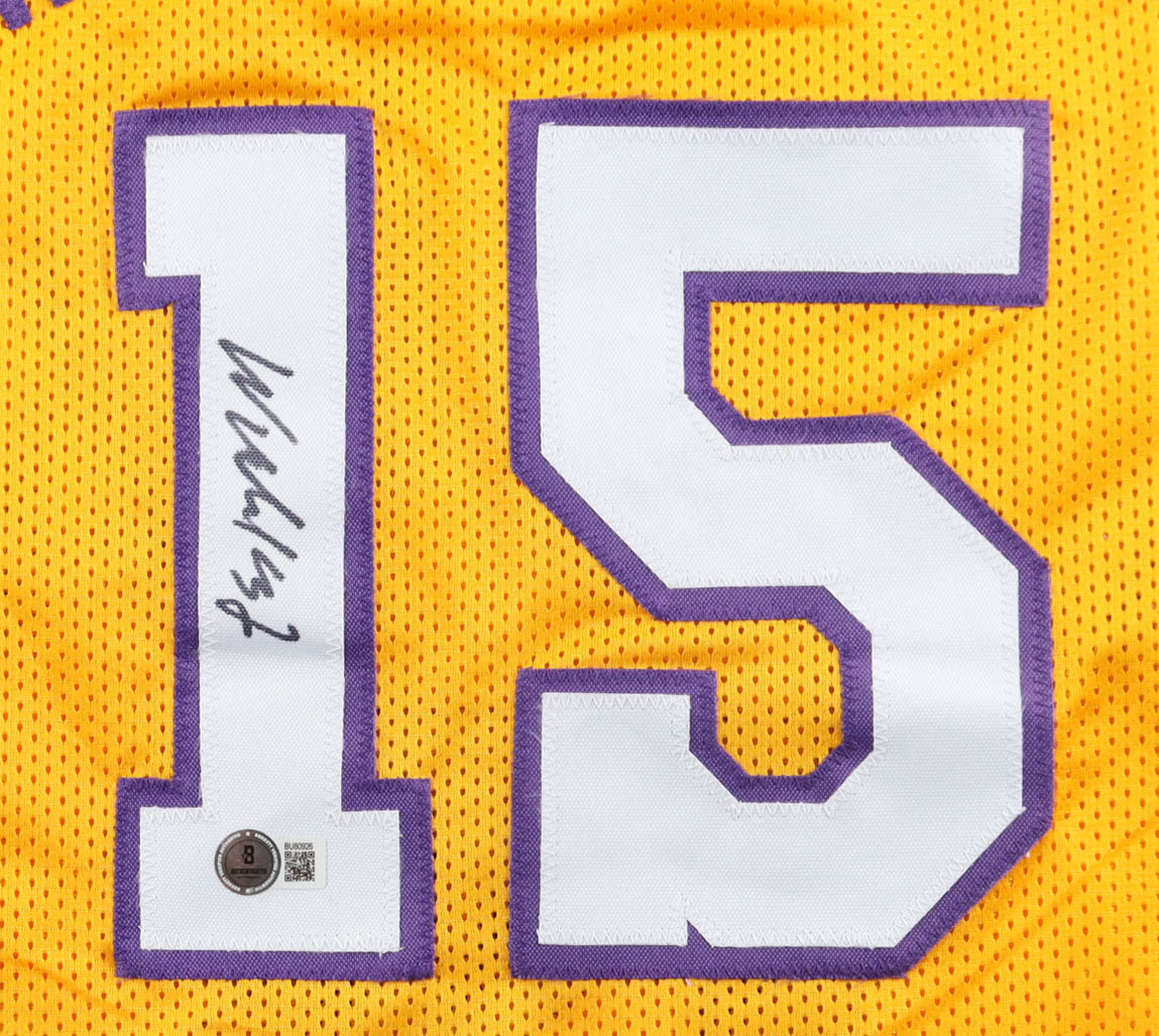 Custom jersey with everything sewn on, size XL. Hand-signed by World B. Free.
