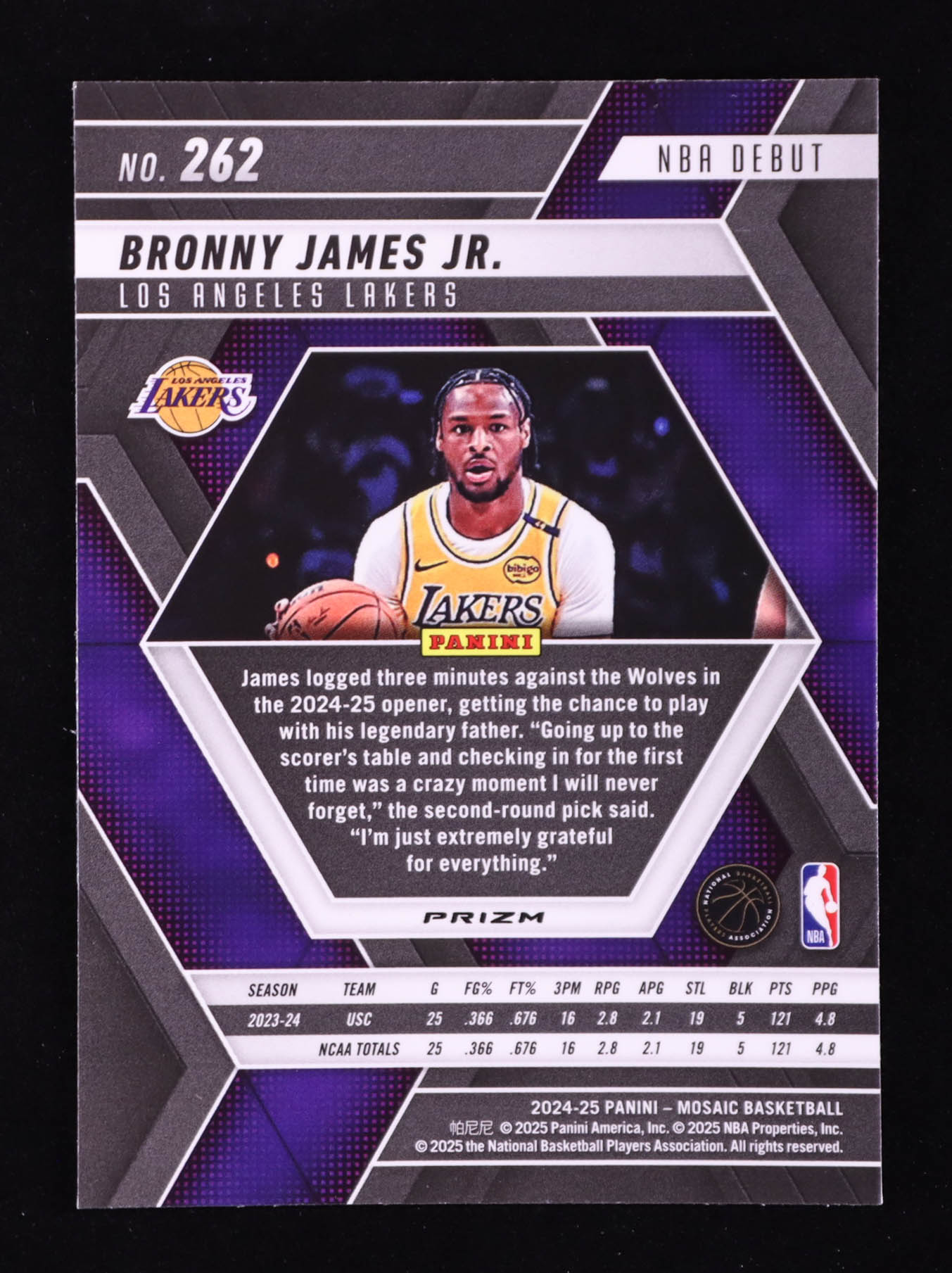 Bronny James Jr. 2024-25 Panini Mosaic Mosaic Green #262 NBA Debut