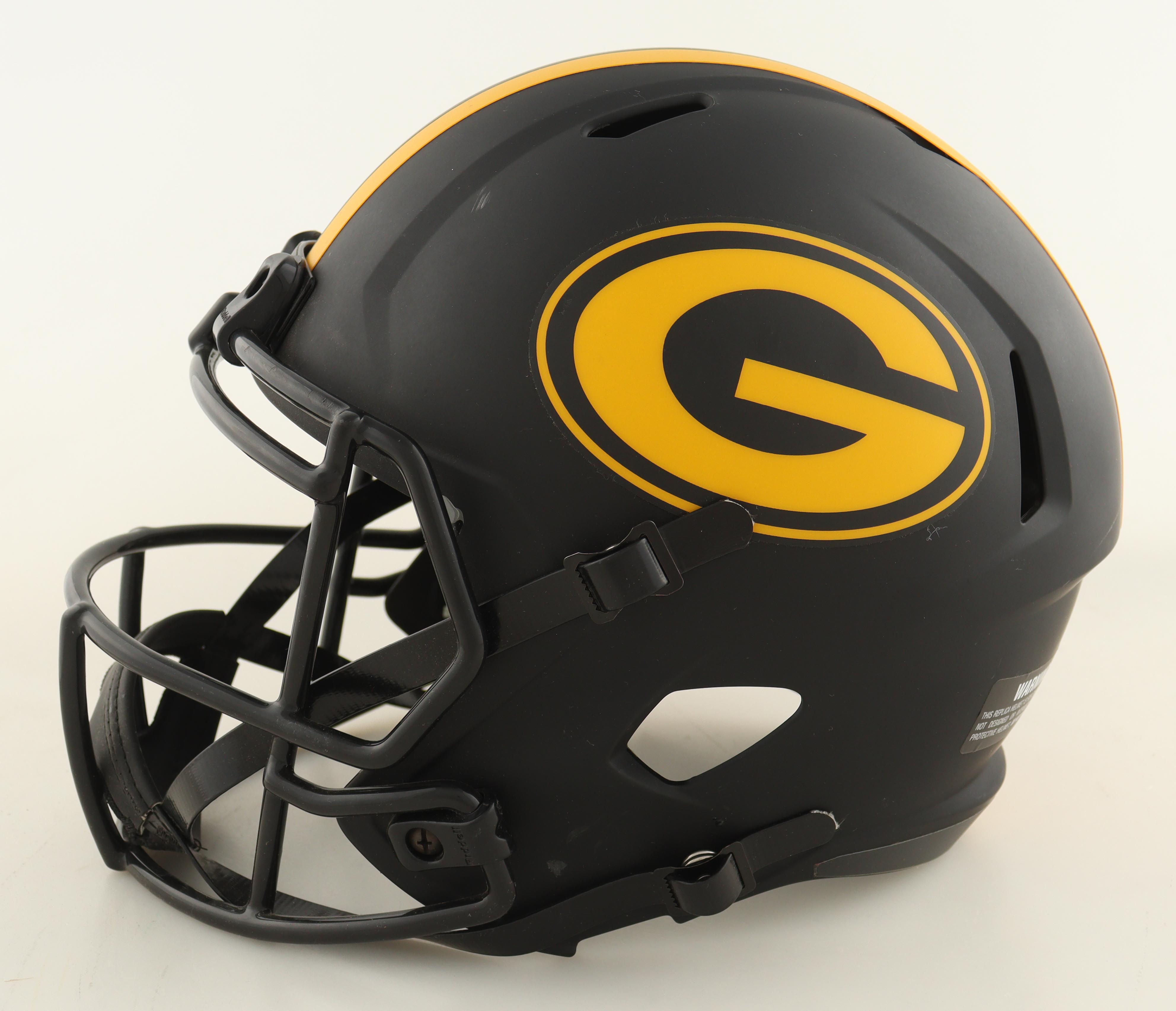 Riddell Green Bay Packers full-size replica Eclipse alternate Speed helmet. Hand-signed by Jordan Love.