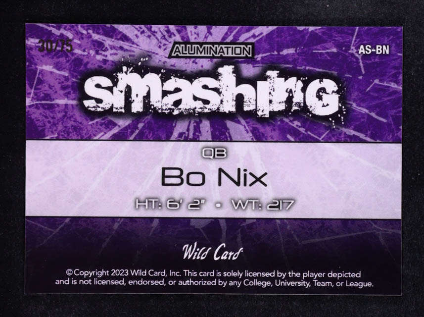 Bo Nix 2023 Wild Card Alumination Smashing Purple Rainbow Foil #ASBN #30/75 RC