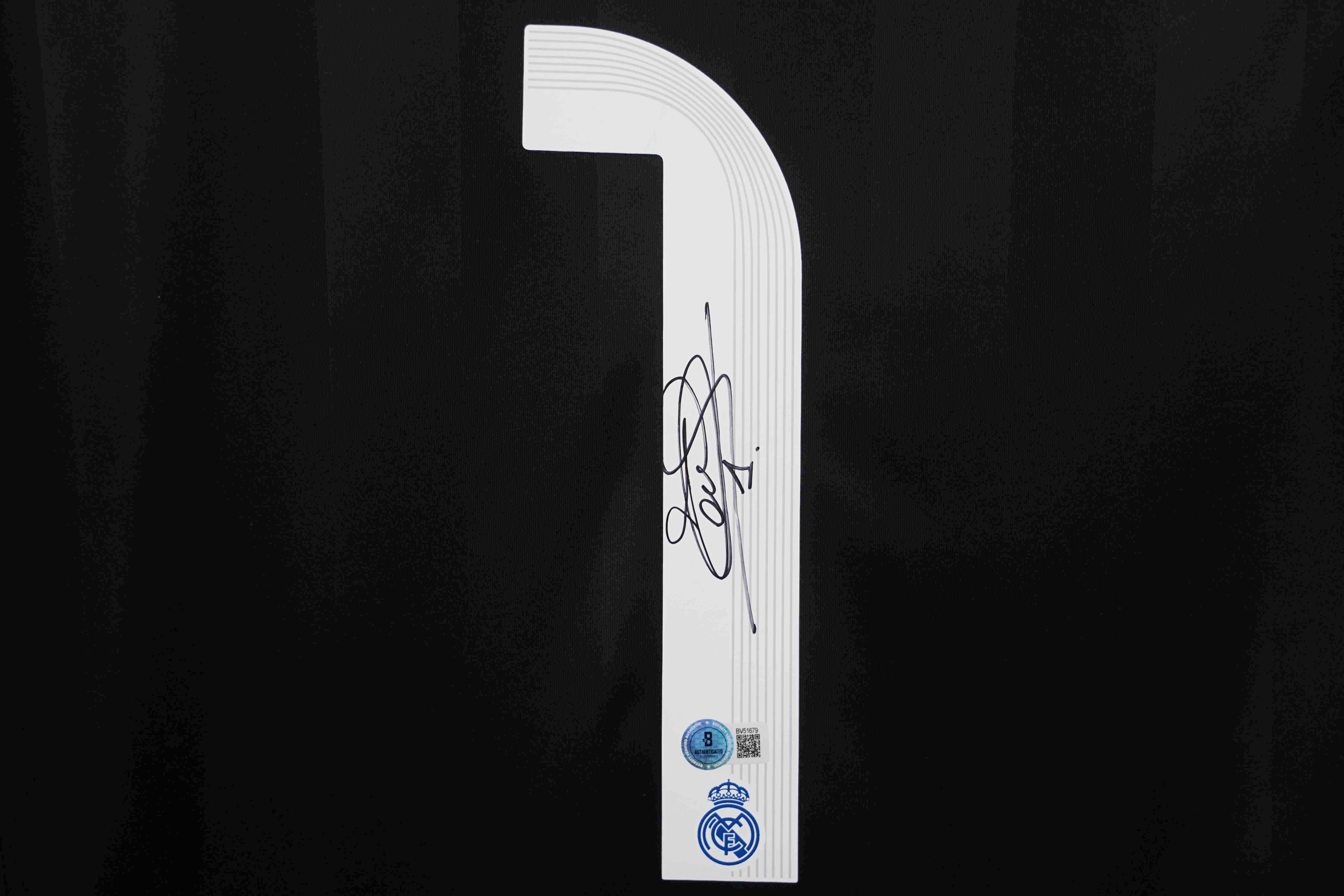 Adidas jersey with everything pressed on, size L. Hand-signed by Thibaut Courtois.