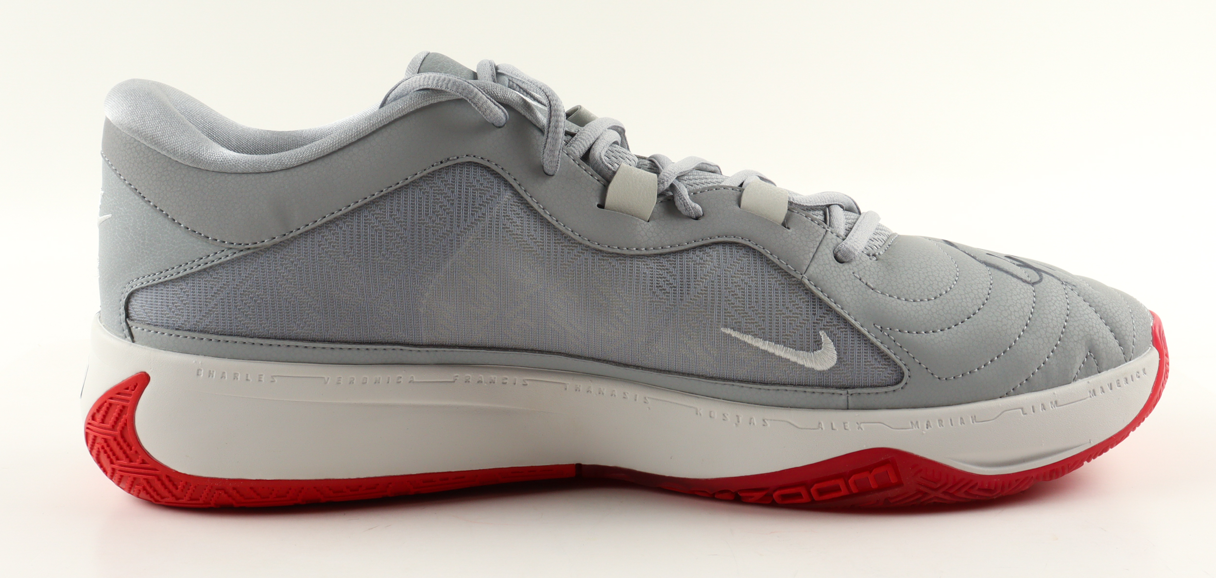 Nike Zoom Freak 5 "Playoff" Promo Basketball Shoe has been hand-signed by Giannis Antetokounmpo (Milwaukee Bucks).