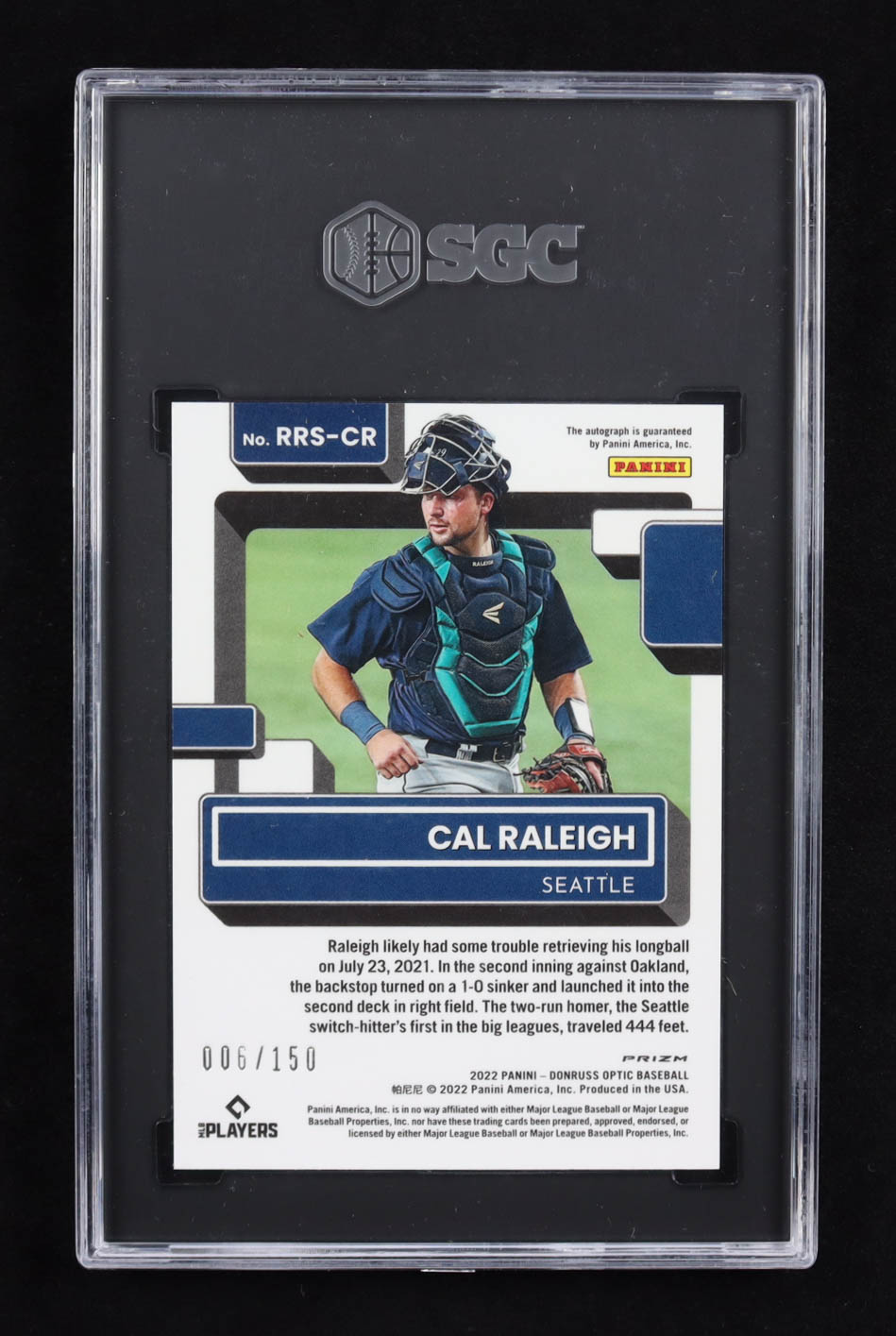 Cal Raleigh 2022 Panini Donruss Optic Rated Rookie Signatures Purple Prizm #RRS-CR RC #006/150 (SGC 9.5 | Autograph Graded SGC 10)