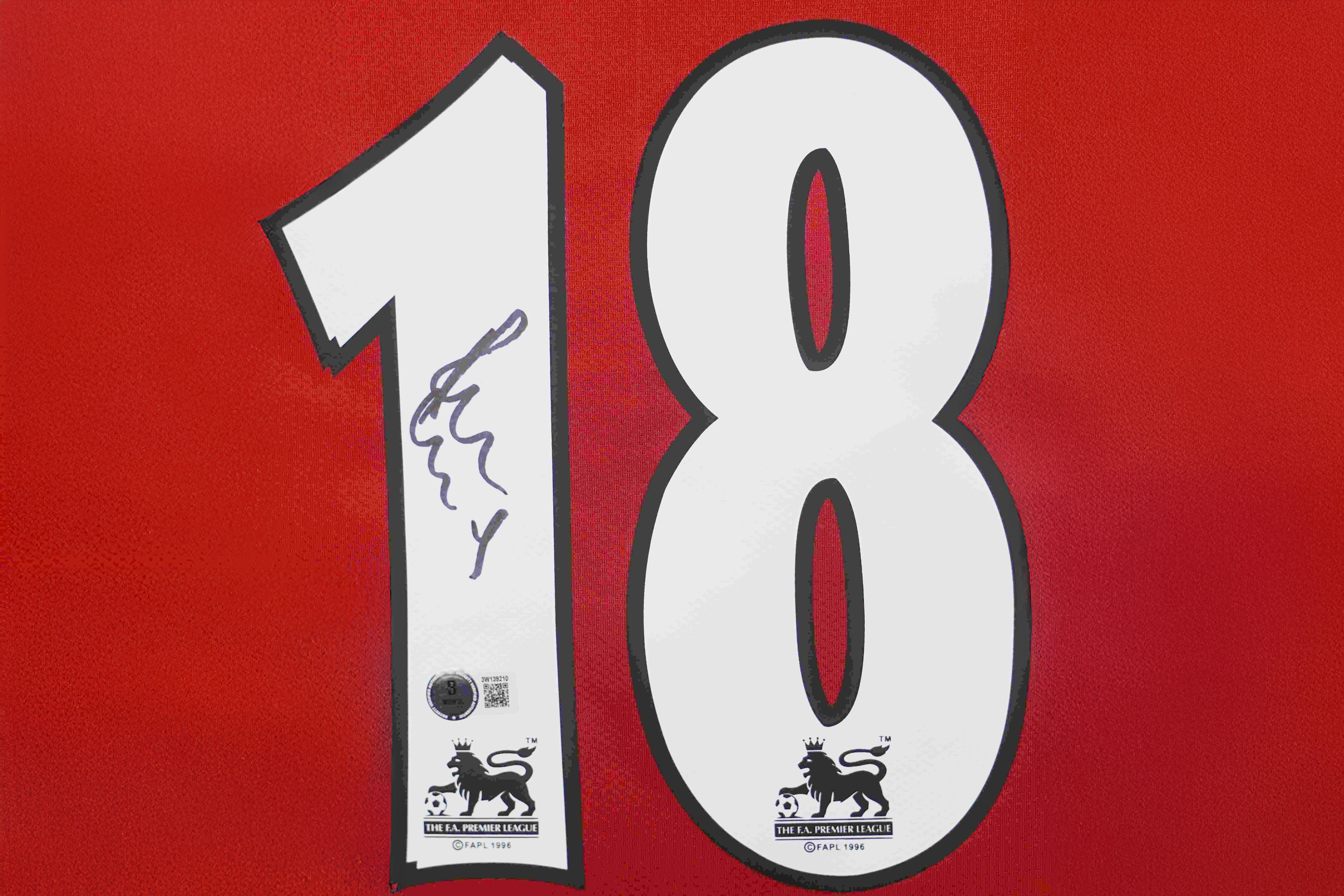 Nike jersey with everything pressed on, size L. Hand-signed by Paul Scholes.