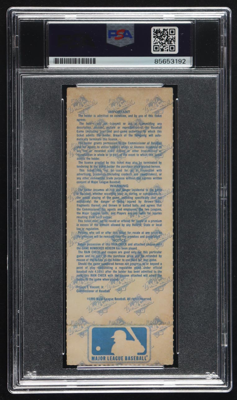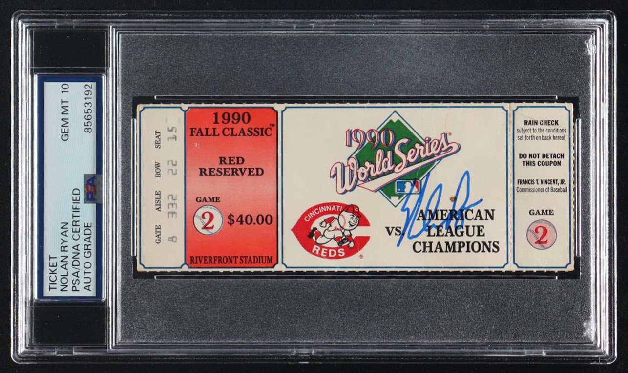 1990 Original Game ticket has been hand-signed by Nolan Ryan (Texas Rangers, HOF) and graded (PSA 10). Please see photos for details regarding the item.