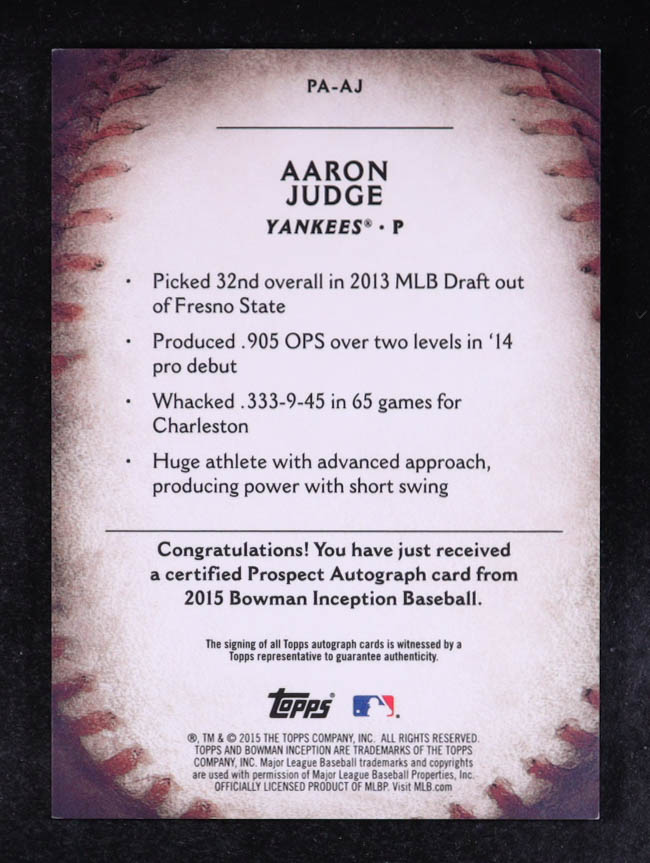 Aaron Judge 2015 Bowman Inception Prospect Autographs #PAAJ RC