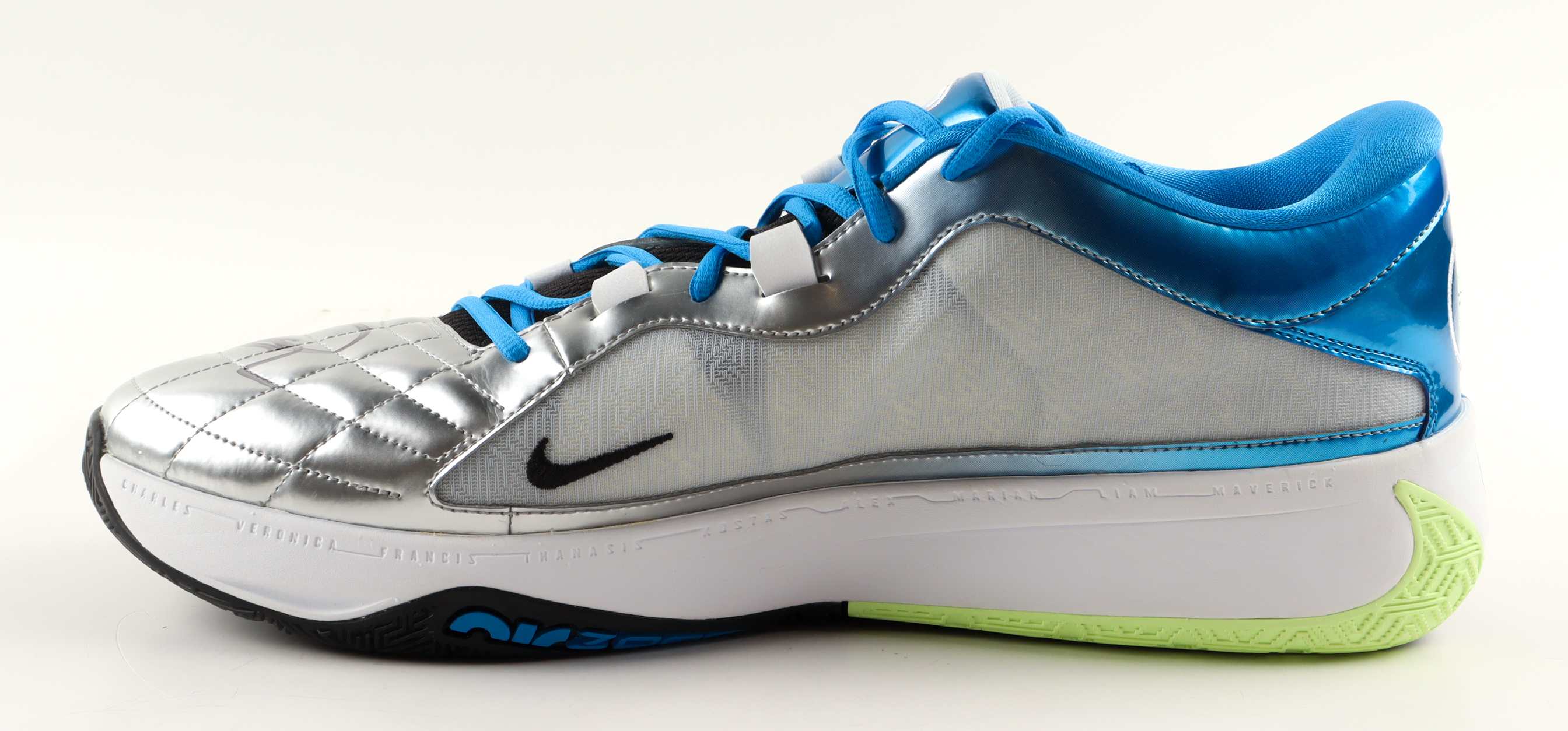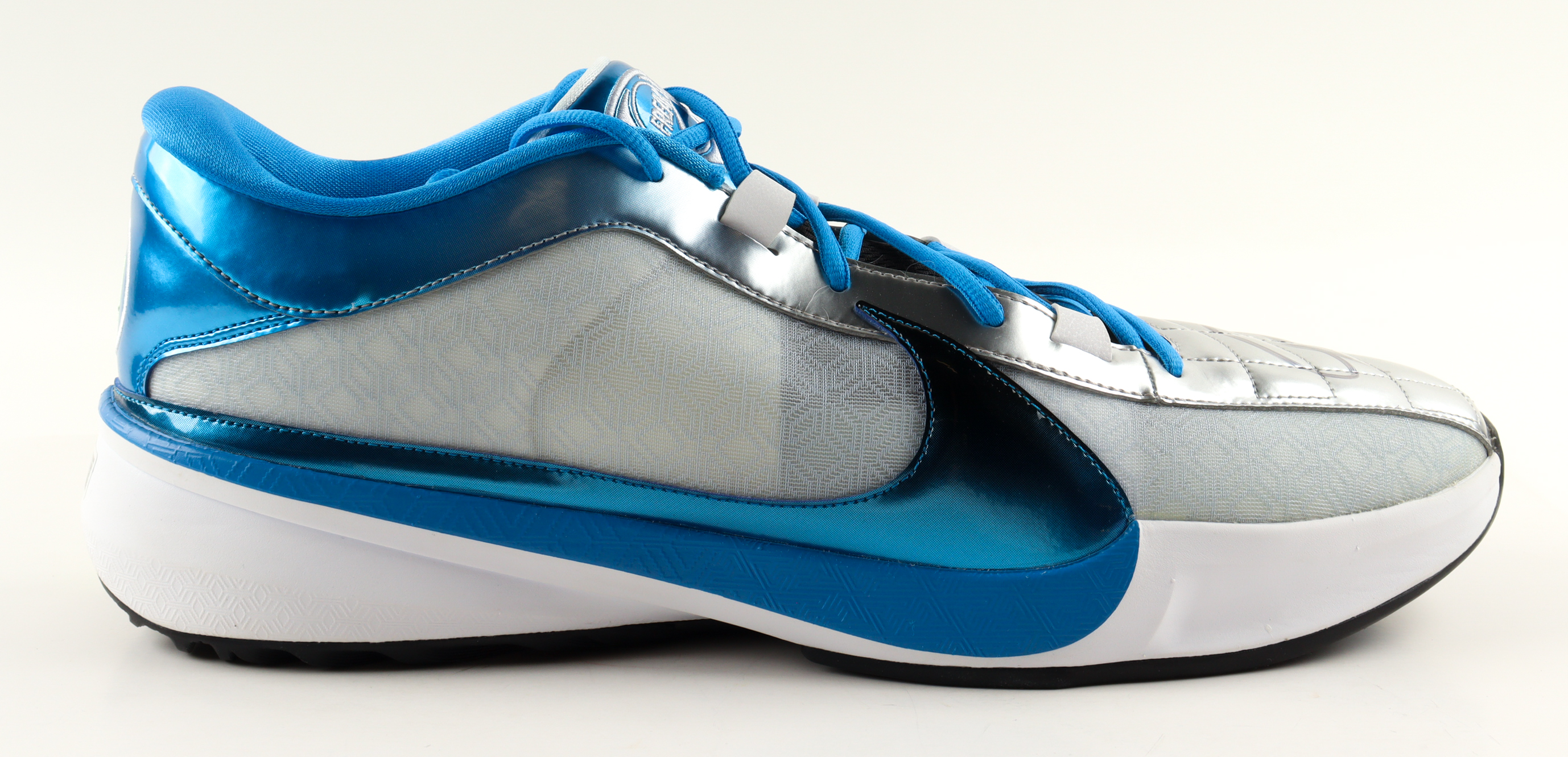 Nike Zoom Freak 5 "Ode to Your First Love" Promo Basketball Shoe has been hand-signed by Giannis Antetokounmpo (Milwaukee Bucks).