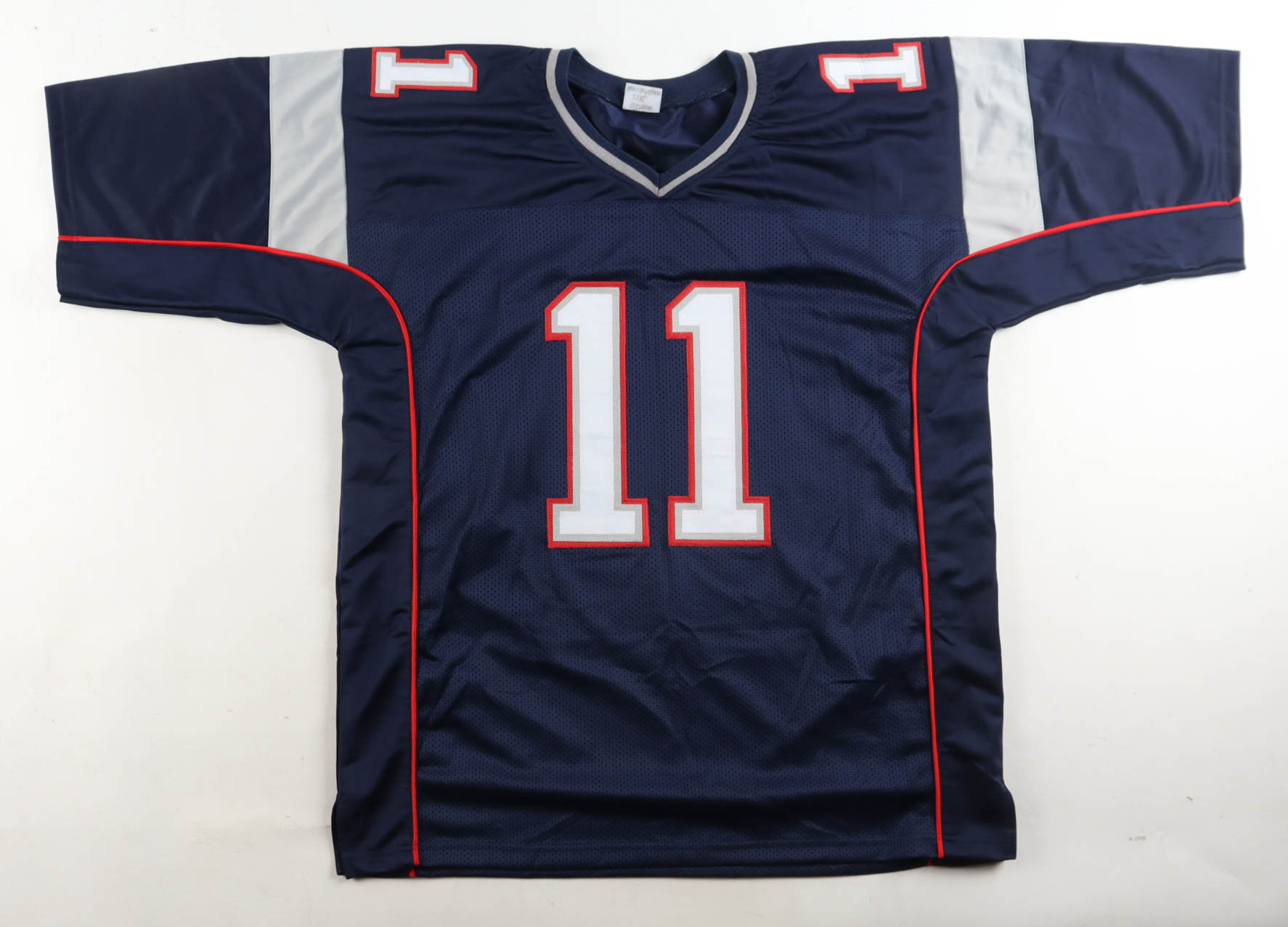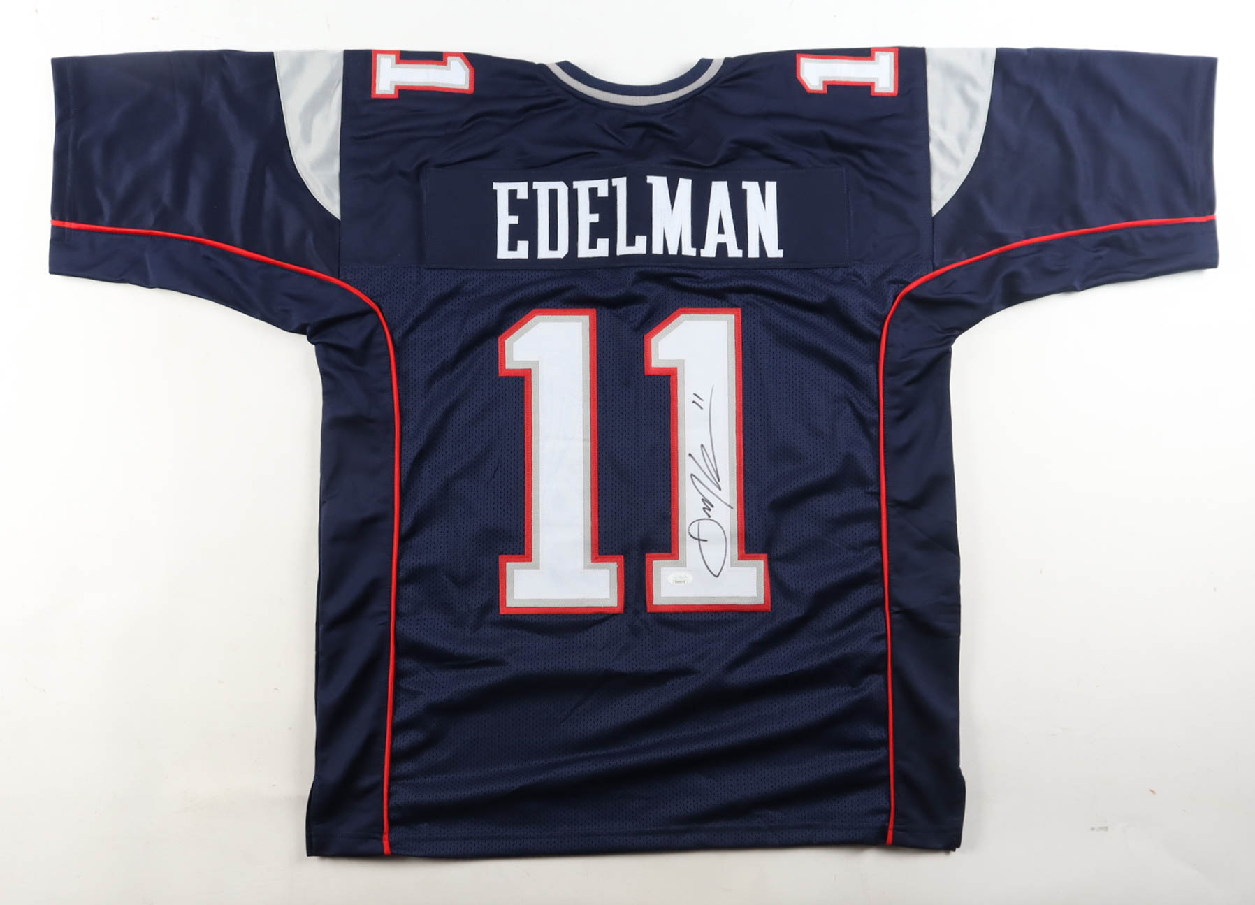 Custom jersey with everything sewn on, size XL. Hand-signed by Julian Edelman. Please note, glue is visible through the reverse number. See photos regarding the condition of the item.
