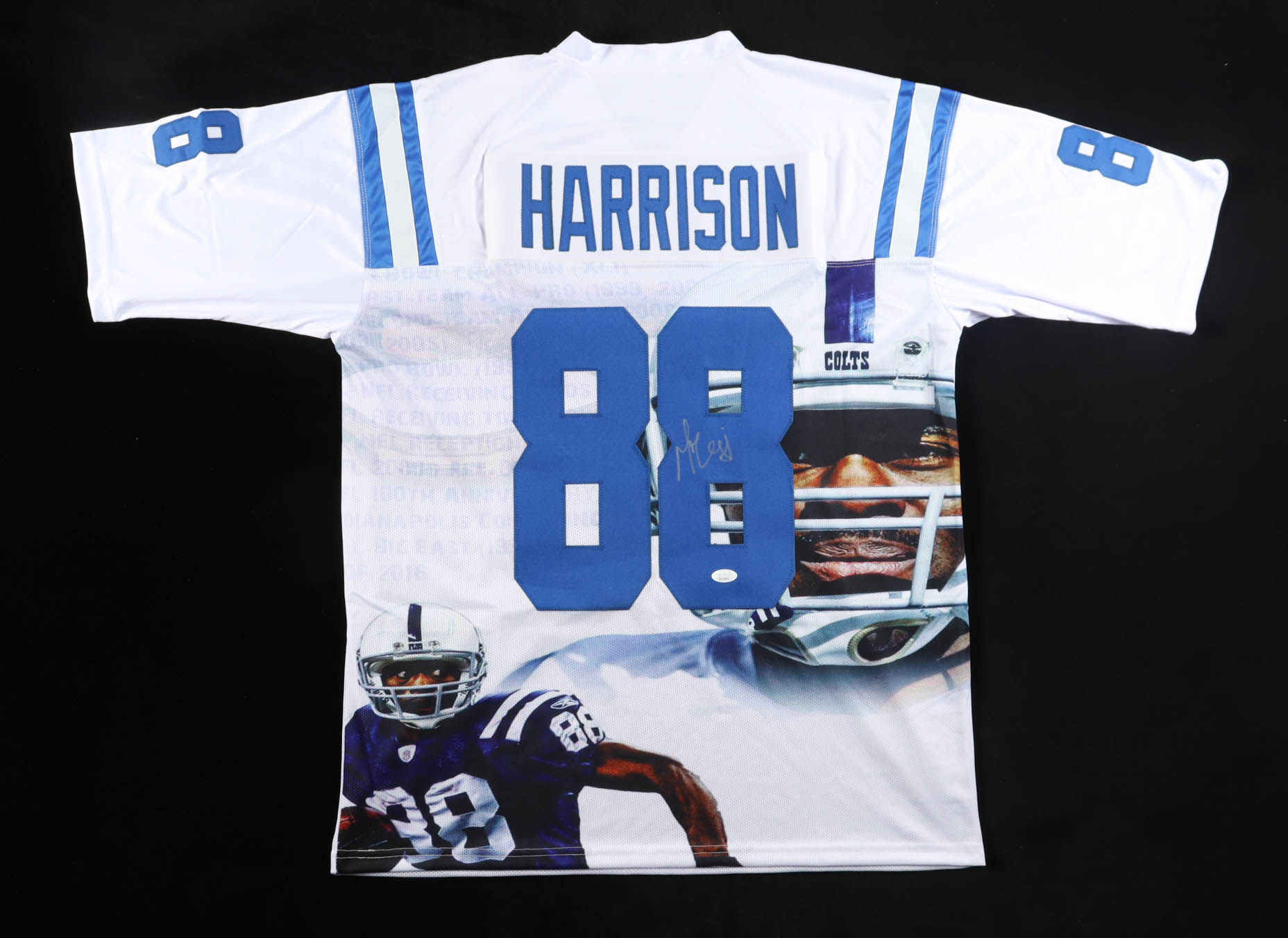 Custom jersey with everything sewn on, size XL. Hand-signed by Marvin Harrison (HOF).
