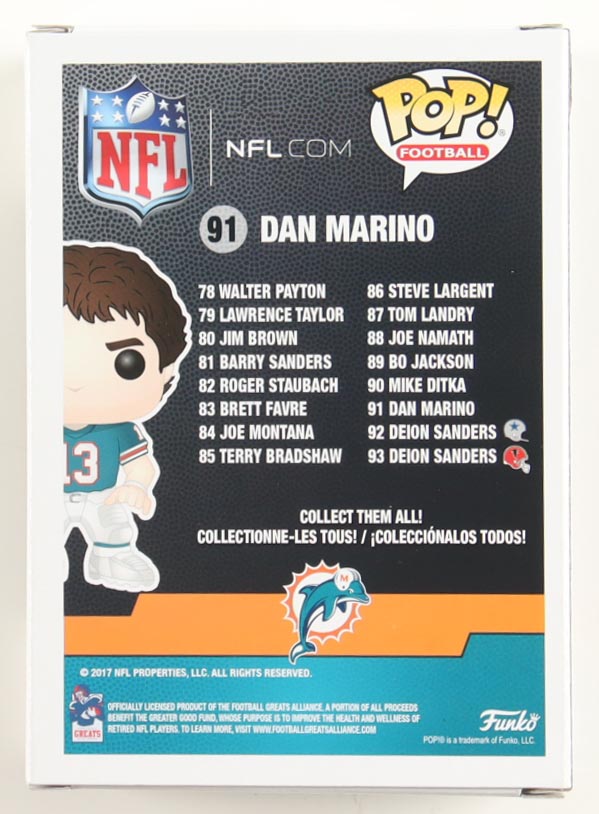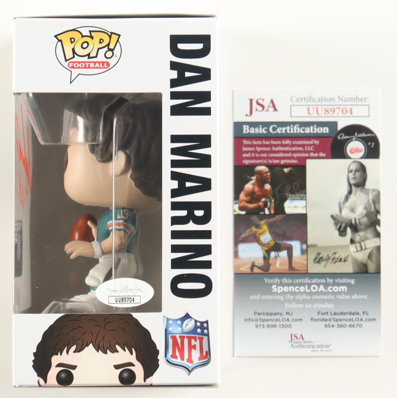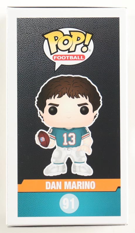Funko Pop! vinyl figure that measures approximately 4" tall and has been hand-signed on the packaging by Dan Marino (Miami Dolphins, HOF).