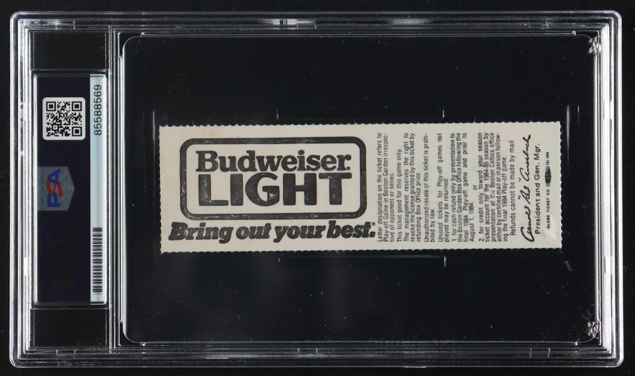 1984 NBA Playoffs Original Game ticket has been hand-signed by Magic Johnson (Los Angeles Lakers, HOF) and Larry Bird (Boston Celtics, HOF) and graded (PSA 10). Please see photos for details regarding the item.