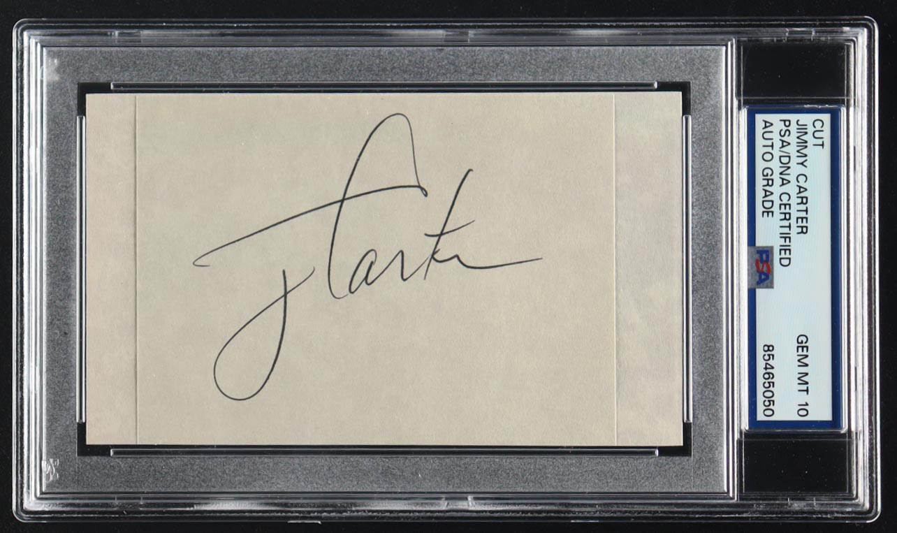 Index card has been hand-signed by Jimmy Carter (D. 2024) and has been graded (PSA) 10. Please see photos for details regarding the item.