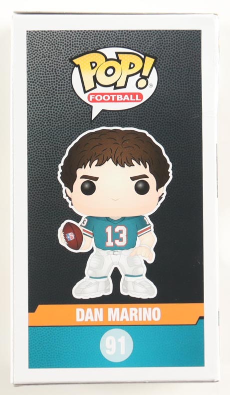 Funko Pop! vinyl figure that measures approximately 4" tall and has been hand-signed on the packaging by Dan Marino (Miami Dolphins, HOF). Please note, the edge of the box is creased.