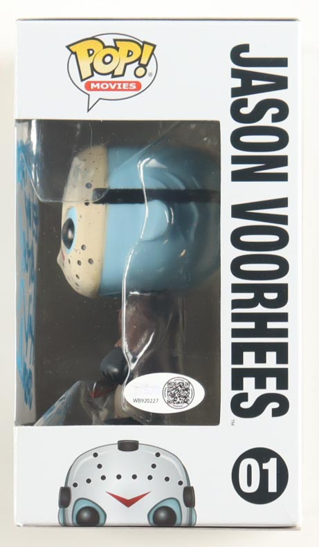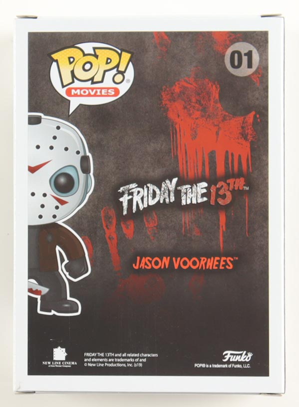 Funko Pop! vinyl figure measures approximately 4" in height. Hand-signed and inscribed on the packaging by Ari Lehman (Jason Voorhees).