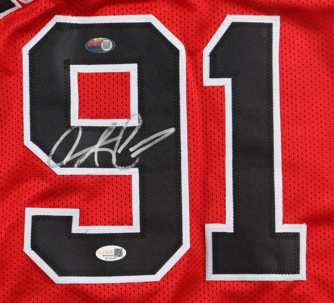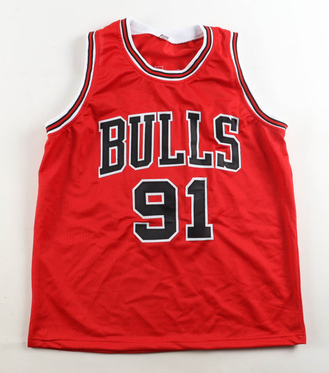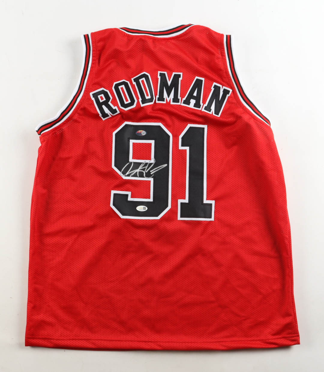 Custom jersey with everything sewn on, size XL. Hand-signed by Dennis Rodman (HOF).